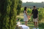 Le immagini parlano da sole ovviamente. Mi sono sentita come uno di quei paparazzi nascosti dietro alle siepi per prendere la foto del VIP di turno ed ho anche pensato, beh però divertente! Lui si è inginocchiato classicamente con il sole che stava calando, con la violinista che suonava e le sue noti riecheggiavano tra la vallata del Chianti, poi si è alzato e si sono abbracciati, lei aveva detto di sì.