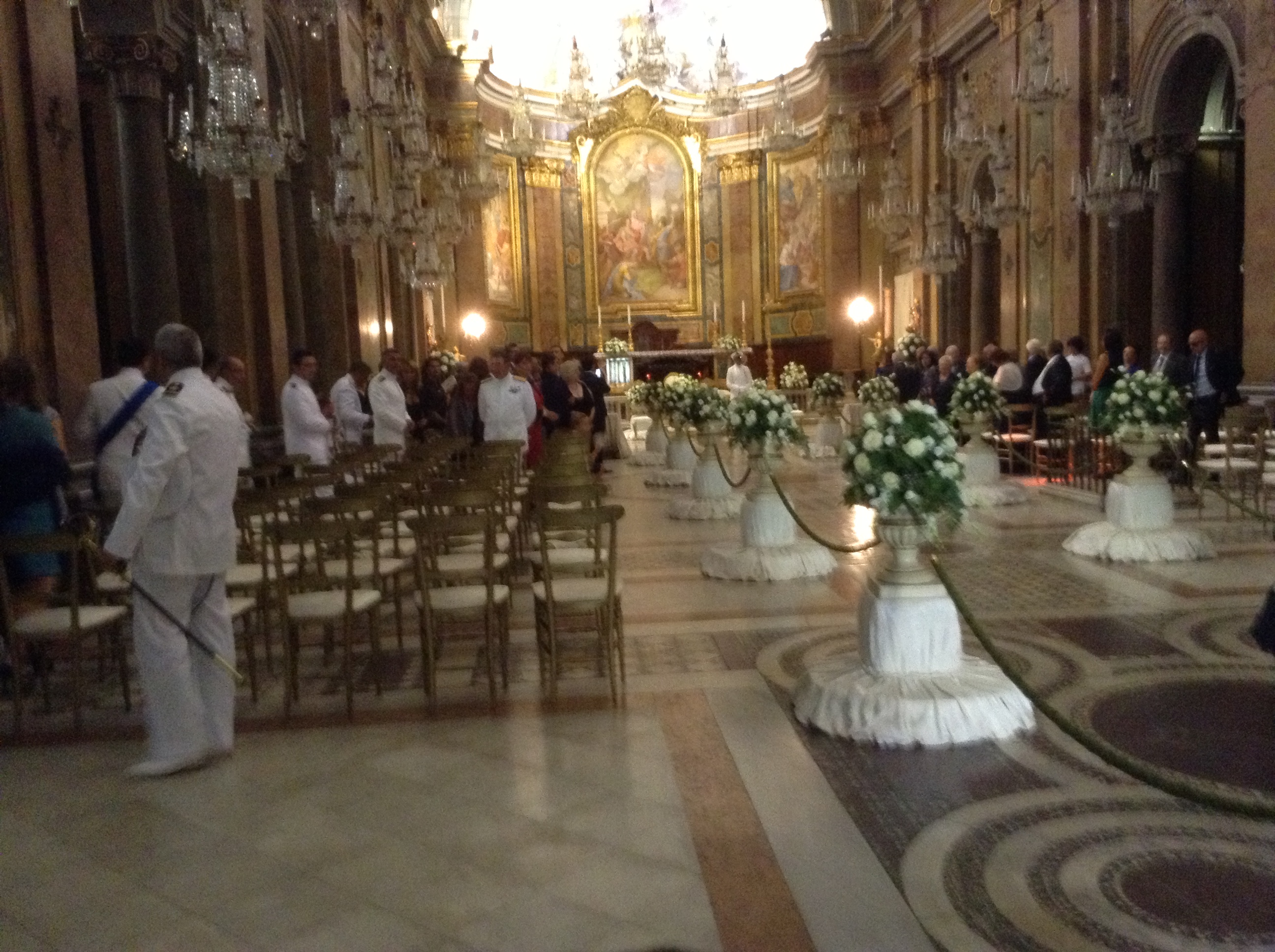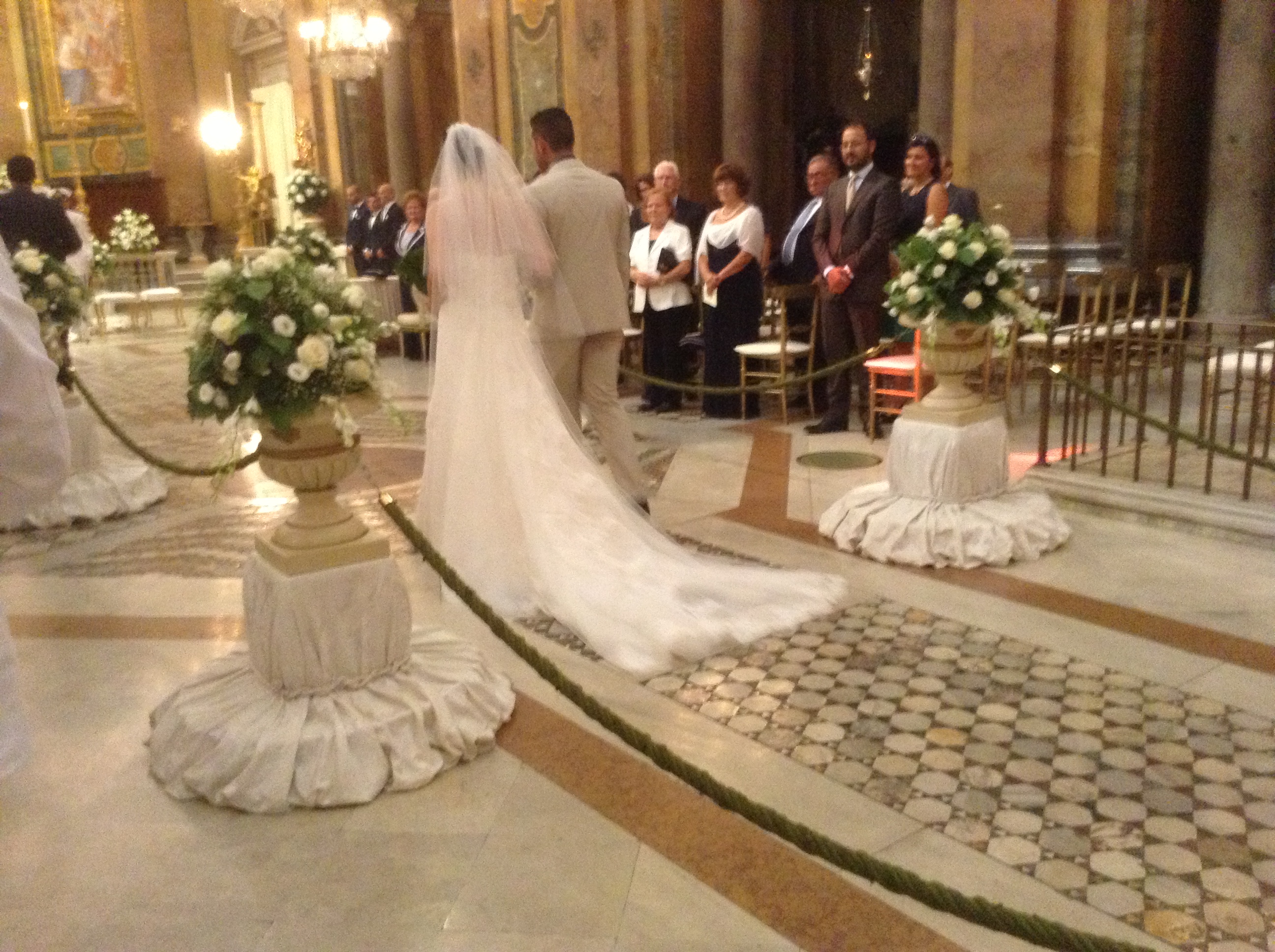 La cerimonia e il ricevimento si sono svolti, prima al Celio, nella bellissima basilica dei SS Giovanni e Paolo, o meglio conosciuta come la chiesa dei lampadari. Una meraviglia barocca! Il tutto è stato ancora più emozionante e scenografico anche perchè oltre alla mia amica, bellissima sposa, c’era lo sposo che è un ufficiale della nostra Marina Militare e quindi indossava l’uniforme. Al momento dell’uscita, il bellissimo passaggio sotto le spade tintinnanti, come segno d’augurio.